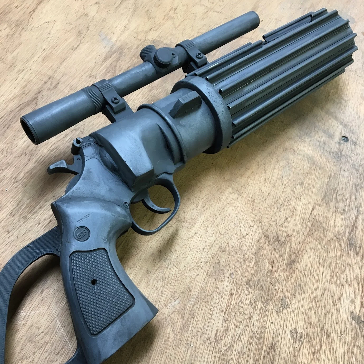 Next I covered the Apoxy Sculpt with Bondo. The original prop makers used a Webley & Scott No. 2 Mark I Flare Pistol (pictured below). After the bondo dried I was ready to start carving with a dremel to replicate the shape of the Webley.
